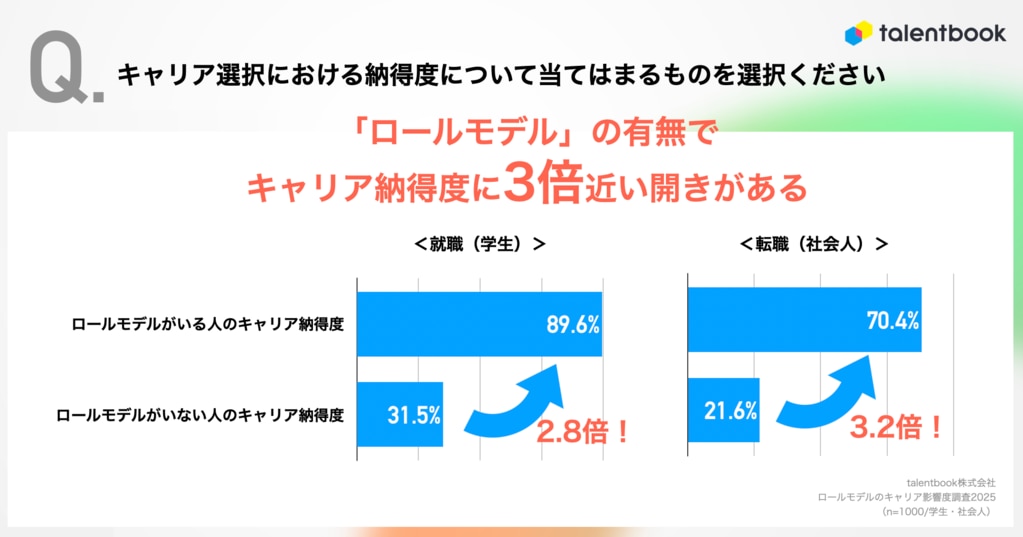 「ロールモデルがいる社会人」のキャリア納得度は、「いない人」と比べて3倍近く高かったのです。
