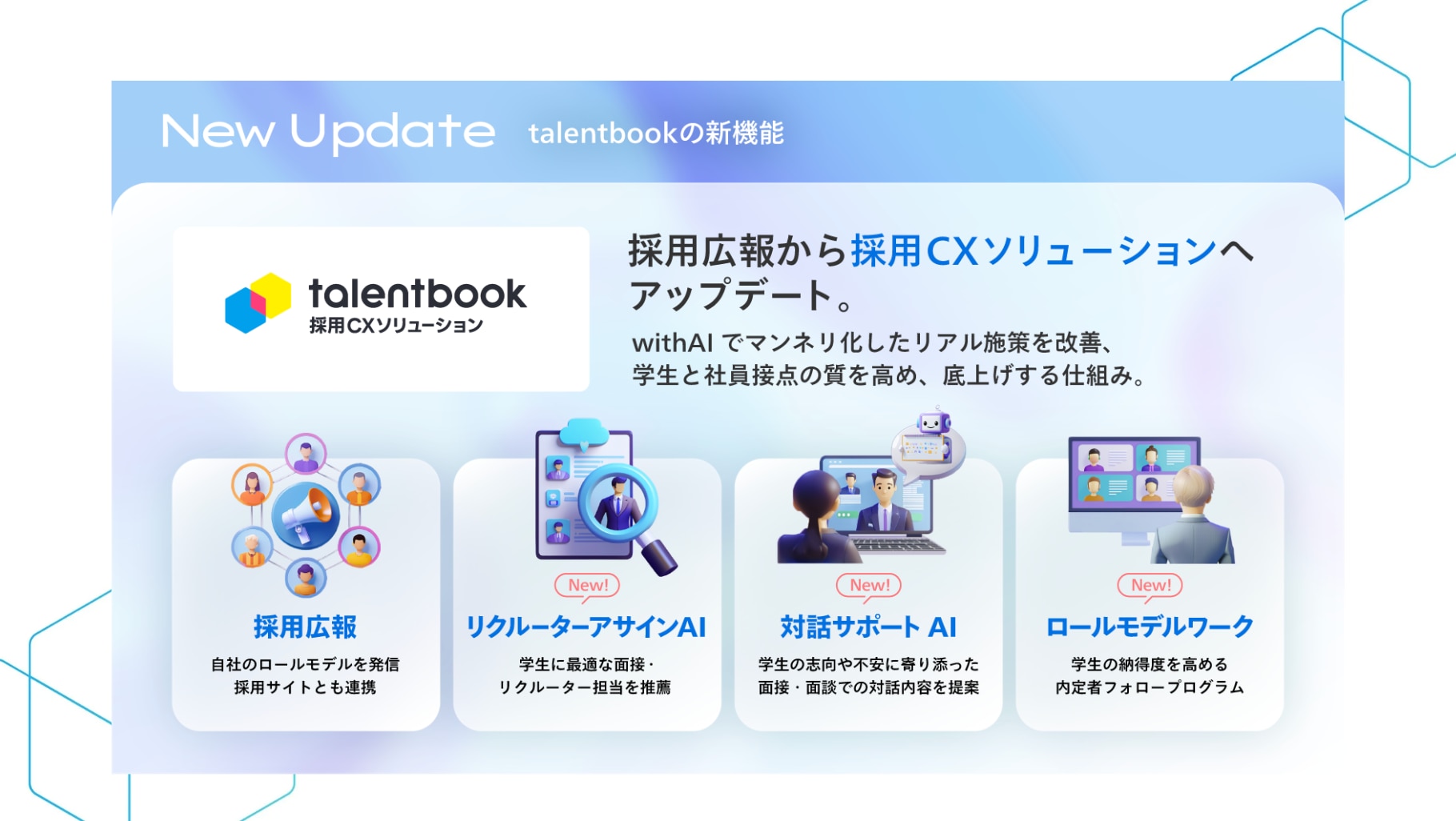 本資料では、「インターンシップフォロー」「OB・OG訪問」「内定者面談」などのリアル施策をwith AIで改善し、学生と社員の接点の質を高める仕組みをご紹介します。