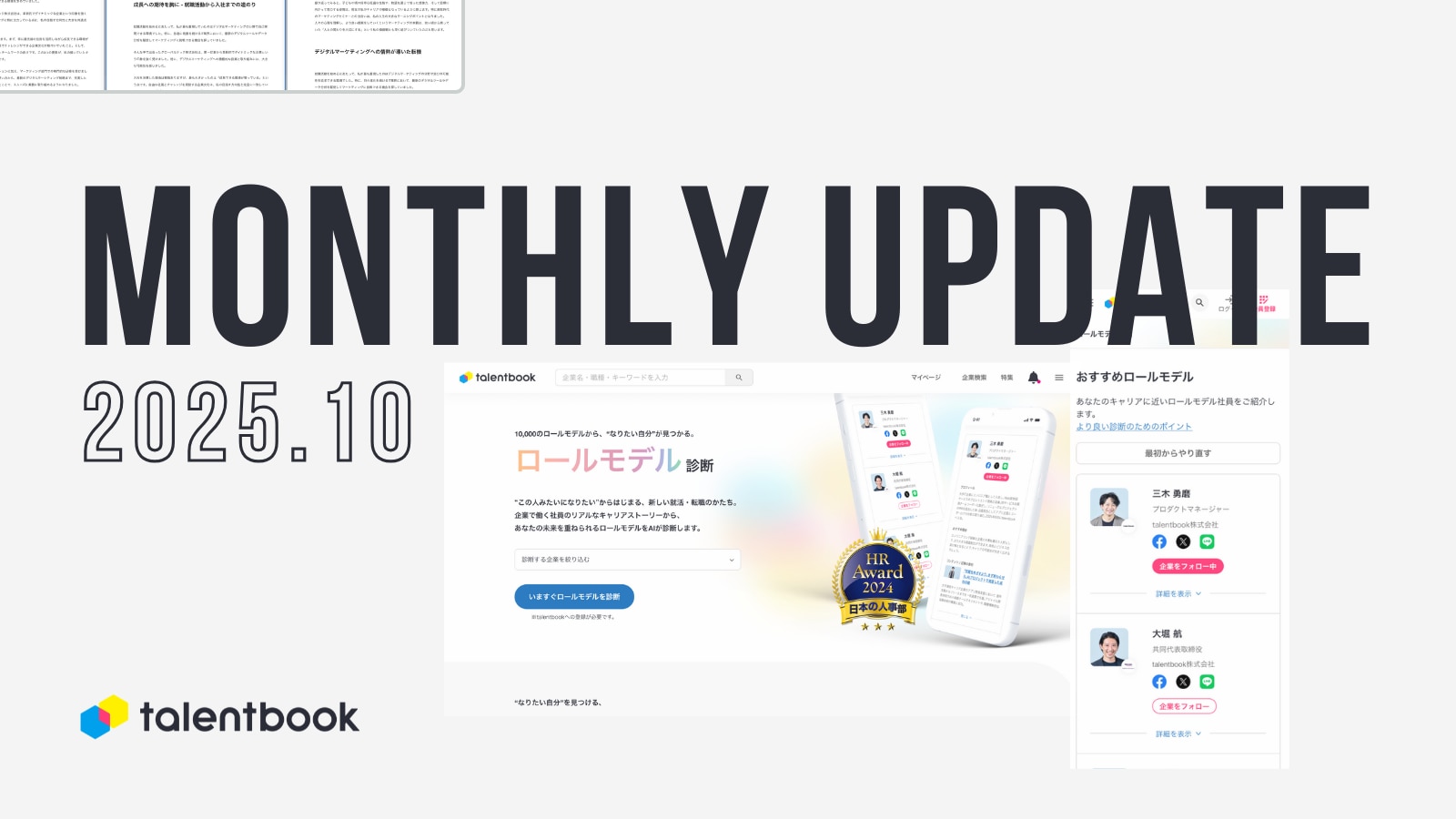 今月は、talentbookメディアの大きなアップデートとして「ロールモデル診断」という新機能をリリースしました。