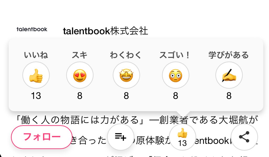 メディアに掲載中のリアクションボタンをより使いやすく改善しました。